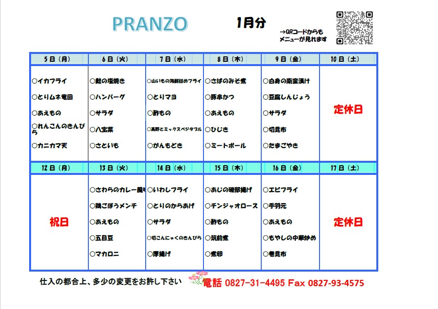 メニュー表|PRANZO | 社会福祉法人ビタ・フェリーチェ