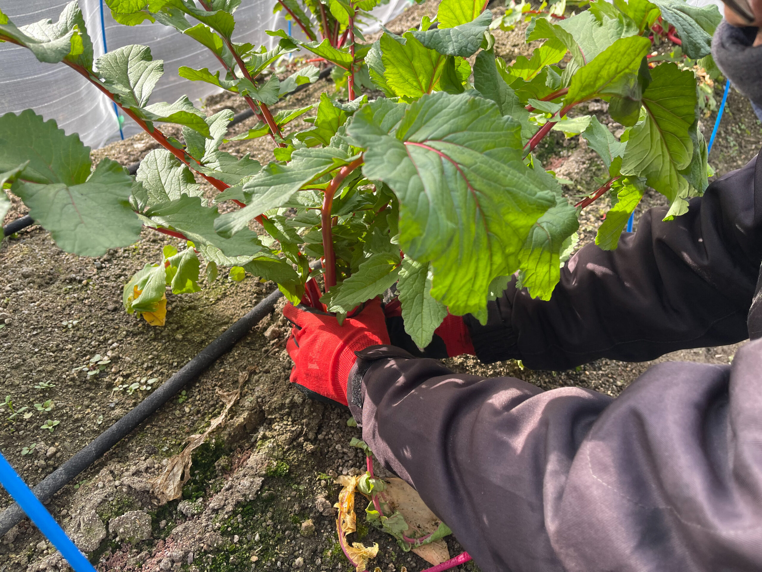 そして、赤大根は文字通り、茎も株も赤くなっていました。