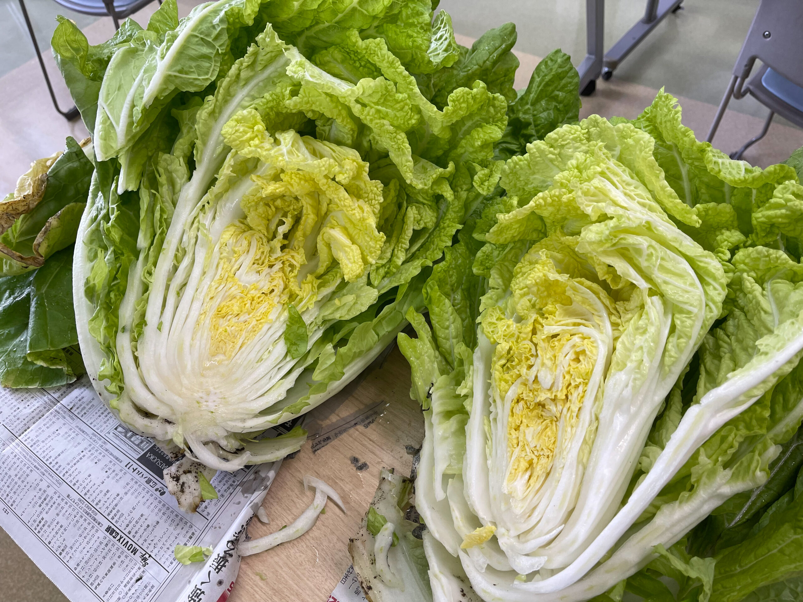 9月から栽培をしていた岩国名産の”錦帯白菜”と”赤大根”がついに収穫できました。錦帯白菜は通常の白菜と比べてとても大きく、収穫時に驚きました。