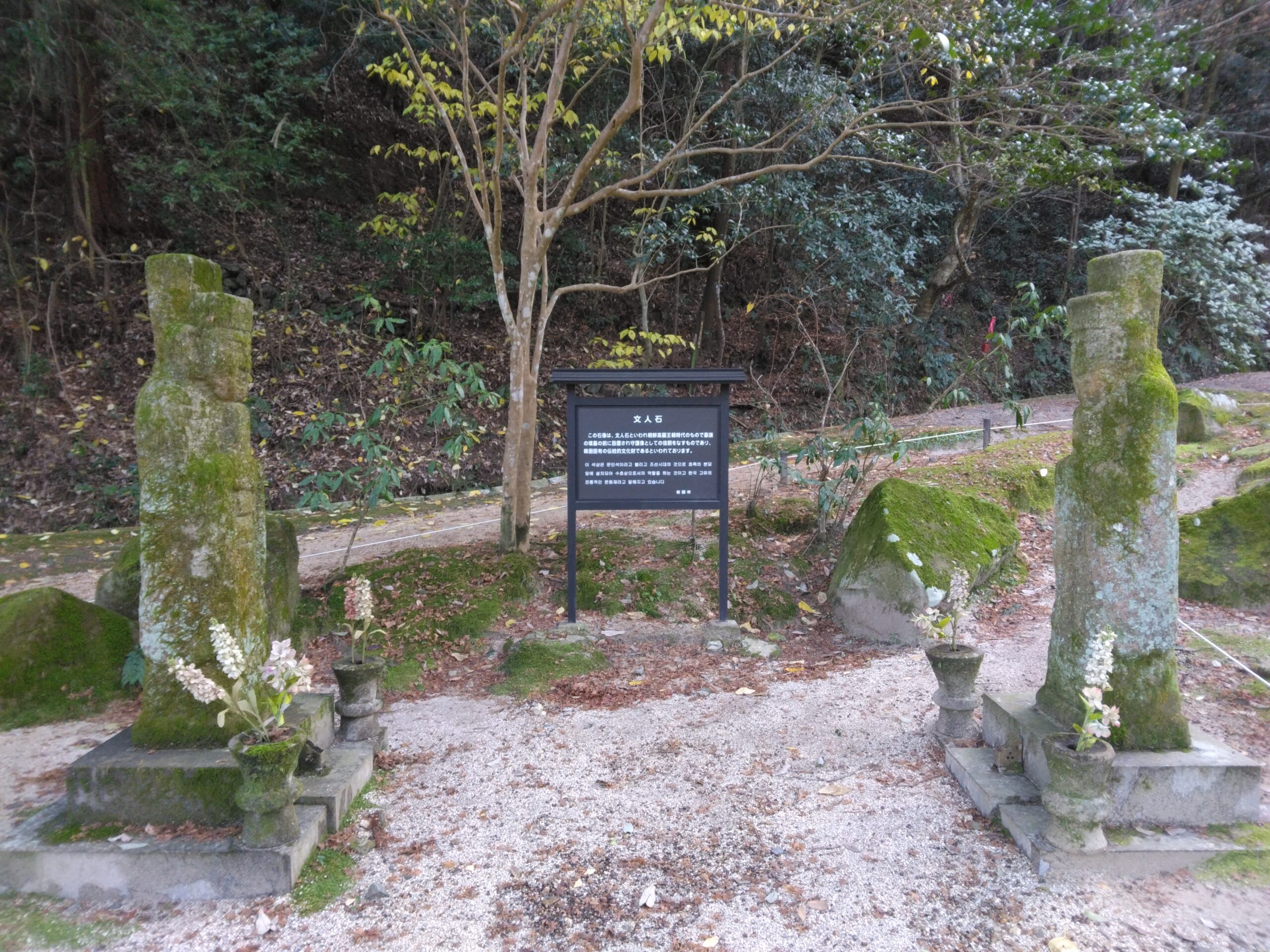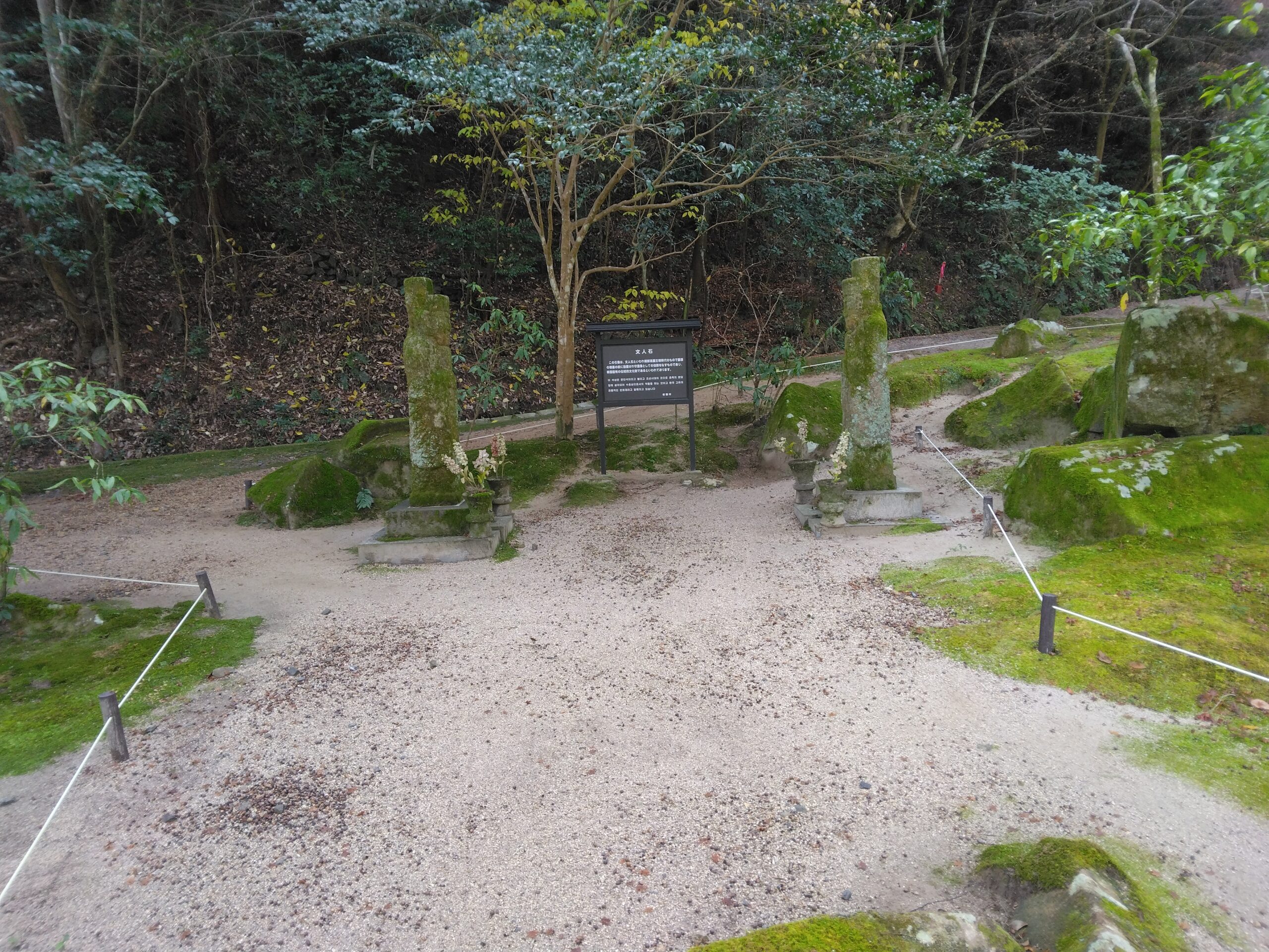 日本庭園には「文人石」と言う指定外文化財があり、その近くを清掃しました。