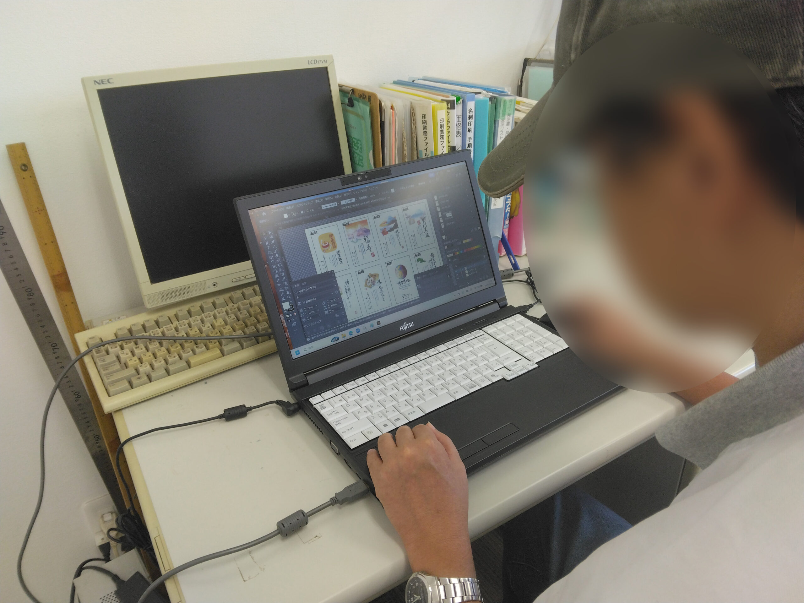 メンバーさんも職員も、グラフィックソフトのイラストレーターやデザインを初心者で始めて、本でゆっくり学んで楽しみながら少しずつスキルを身に付けています。