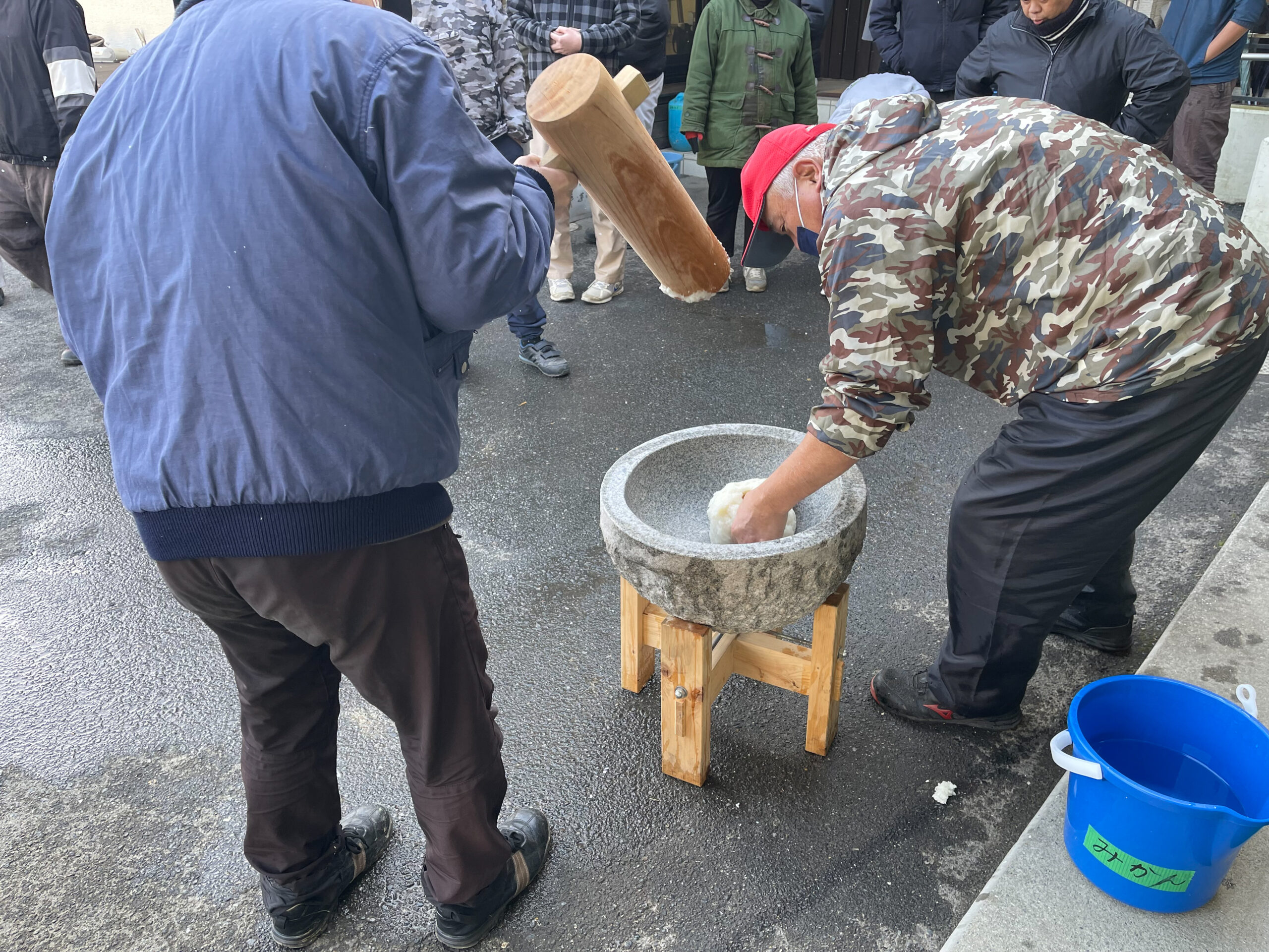 寒い中ではありましたが、恒例の御餅つきをみんなでしました。