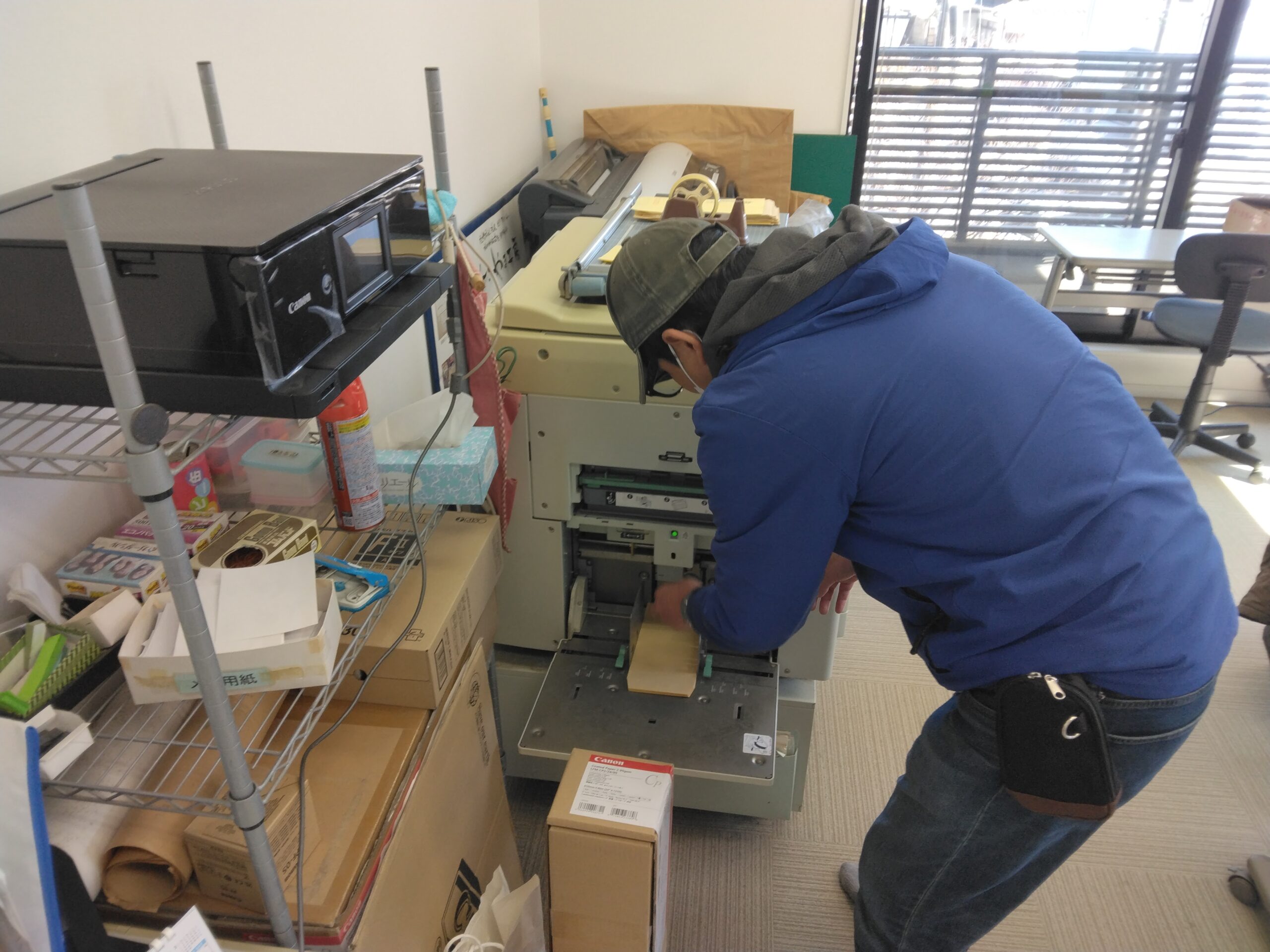 印刷作業では、封筒の印刷も行っており、職員がサポートしながらメンバーさんと一緒に行っています。
